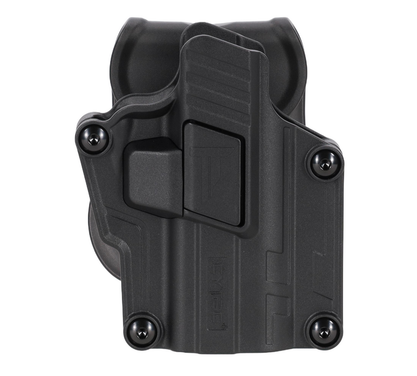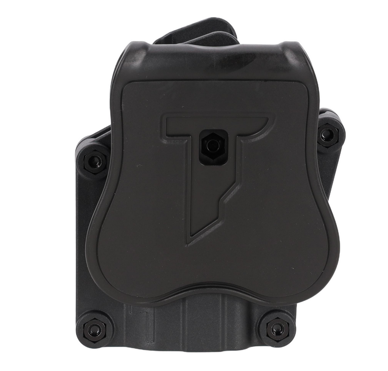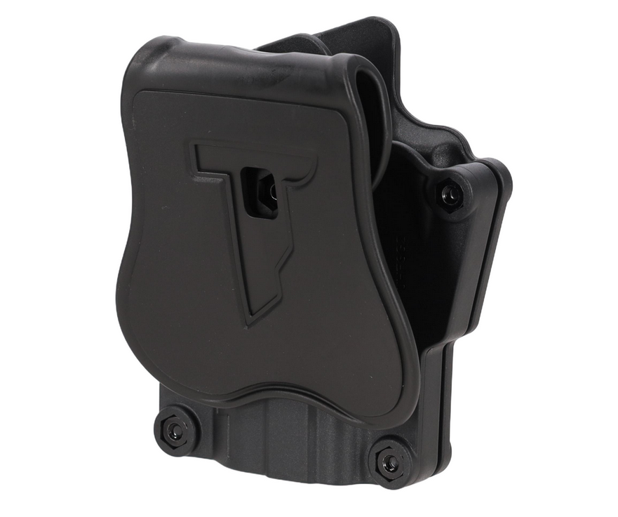 Das Holster ist mit einem rotationalen Befestigungssystem ausgestattet, dank dem es möglich ist, den Winkel der Position der Pistole innerhalb von 360 Grad zu verändern, je nach Vorliebe des Schützen. Die Einstellung ist sehr einfach und wird mit einem Inbusschlüssel vorgenommen.
