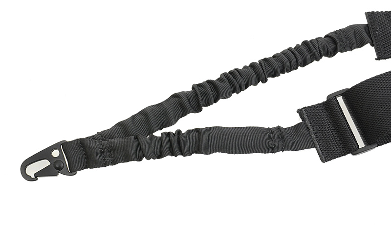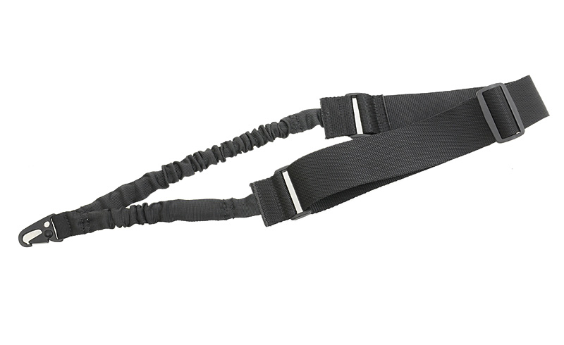Die Aufhängung ist mit einem breiten Band ausgestattet, das für einen sicheren und bequemen Sitz auf der Schulter sorgt. Eine hochwertige Markenschnalle aus Kunststoff gewährleistet einen sicheren Transport der Airsoft-Waffe und ermöglicht ein schnelles Abnehmen. Die richtig gewählte Gummihärte verleiht der aufgehängten Replik eine sehr gute Dämpfung bei Bewegungen. Dank ihrer kompakten Bauweise eignet sich die Einpunkt-Aufhängung ideal für Einsätze in engen Räumen.