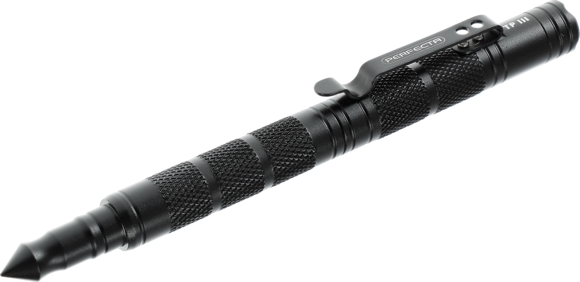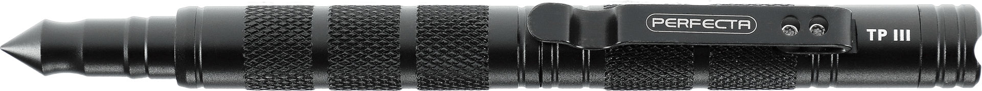 Der Tactical Pen TP III aus robustem Aluminium ist mit einer Steckkappe mit integrierter LED-Leuchte und Clip ausgestattet. Auch für eine Nutzung als Kubotan ist der TP III hervorragend geeignet. Geeignet für Standard-Großraumminen. Inkl. 2 Batterien CR927.