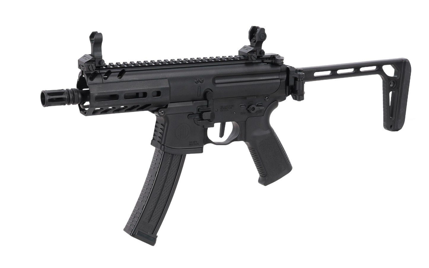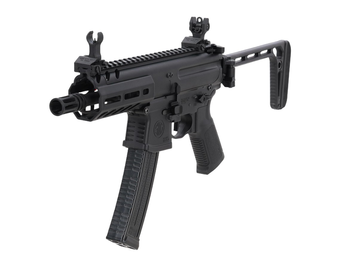 An airsoft submachine gun resulting from a collaboration between King Arms and Sig Sauer.