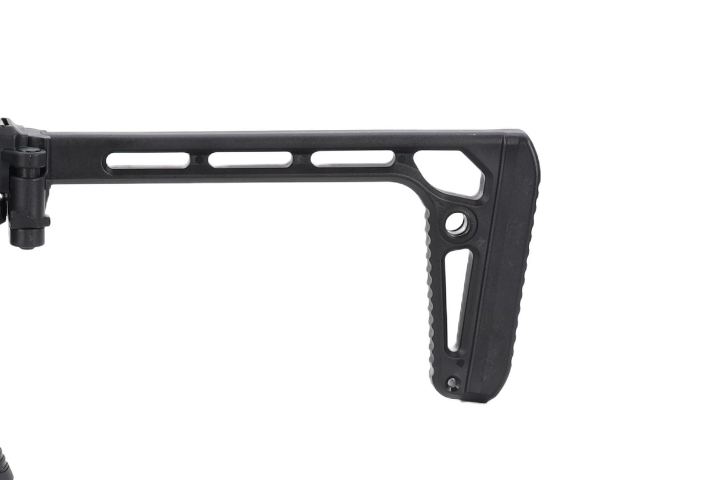 The MPX-K Sportline is equipped with a folding stock, which reduces the length of the replica during transport or shortens it to a minimum during CQB matches. There are QD mounts on the stock