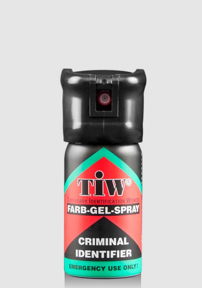 The TIW colour gel spray is non-irritant and sprays a highly adhesive red food colouring, which deters attackers and enables reliable identification of the perpetrator even long after the incident.